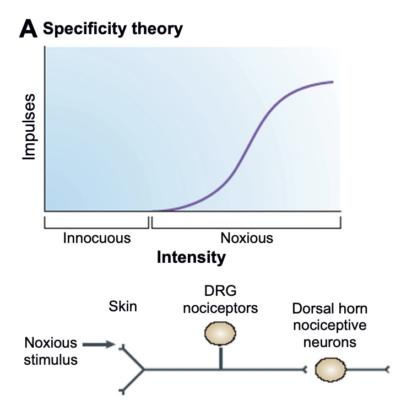 Thuyết đặc hiệu được Descartes đưa ra trong thế kỷ XVII và được hoàn thiện với sự phát triển của sinh lý học vào cuối thế kỷ XIX. Hệ thống cảm giác thân thể được cho là chia thành các thụ thể đặc hiệu cho các thụ thể xúc giác, nóng, lạnh và đau. Thuyết về tính đặc hiệu vẫn được khẳng định bằng việc xác định các cơ quan thụ cảm, các sợi, các đường dẫn truyền và cấu trúc hệ thần kinh trung ương (CNS) đặc hiệu chịu trách nhiệm cho cảm nhận của chúng ta về các phương thức cảm giác thân thể này, bao gồm cả tín hiệu cảm thụ đau.