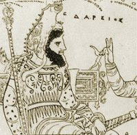 Darius Đại đế, người cai trị một đế chế rộng lớn, được thể hiện trên một chiếc bình Hy Lạp.