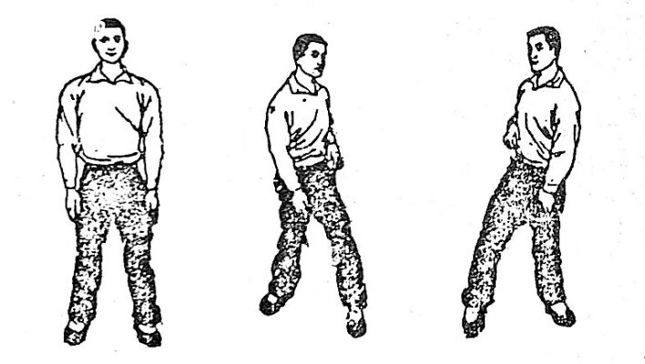 1. Tư thế chuẩn bị : Đứng thẳng tự nhiên, 2 bàn chân song song, khoảng cách bằng chiều rộng vai, 2 tay buông thống tự nhiên (H.1), sau khi thở sâu 3-5 lần, eo lưng lúc lắc tự nhiên.