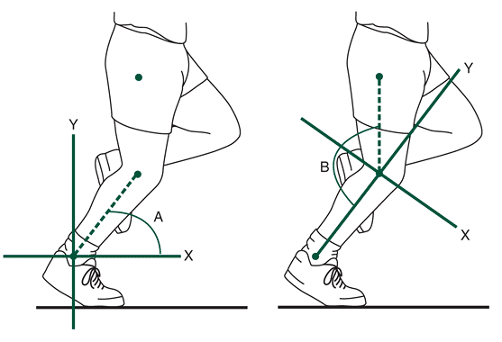 - Góc tuyệt đối: Là góc của phần cơ thể tương ứng với hệ tọa độ tuyệt đối (cố định trong môi trường). Góc tuyệt đối thường được sử dụng trong phân tích sinh cơ học.
