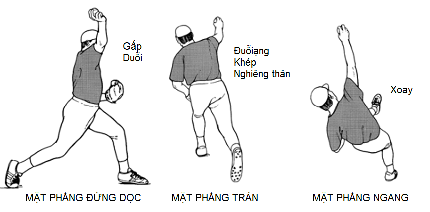 Hầu hết vận động ở cơ thể người xảy ra ở nhiều mặt phẳng và ở nhiều khớp đòi hỏi sự phân tích ở cả ba mặt phẳng. Ví dụ động tác ném bóng (hình 1-15).