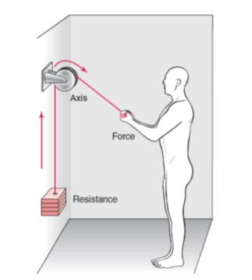 Hãy xét xương cánh tay là một trục và cẳng tay/bàn tay là bánh xe