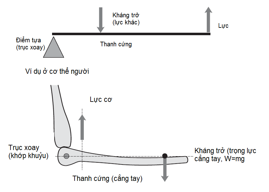 Hãy xét xương cánh tay là một trục và cẳng tay/bàn tay là bánh xe