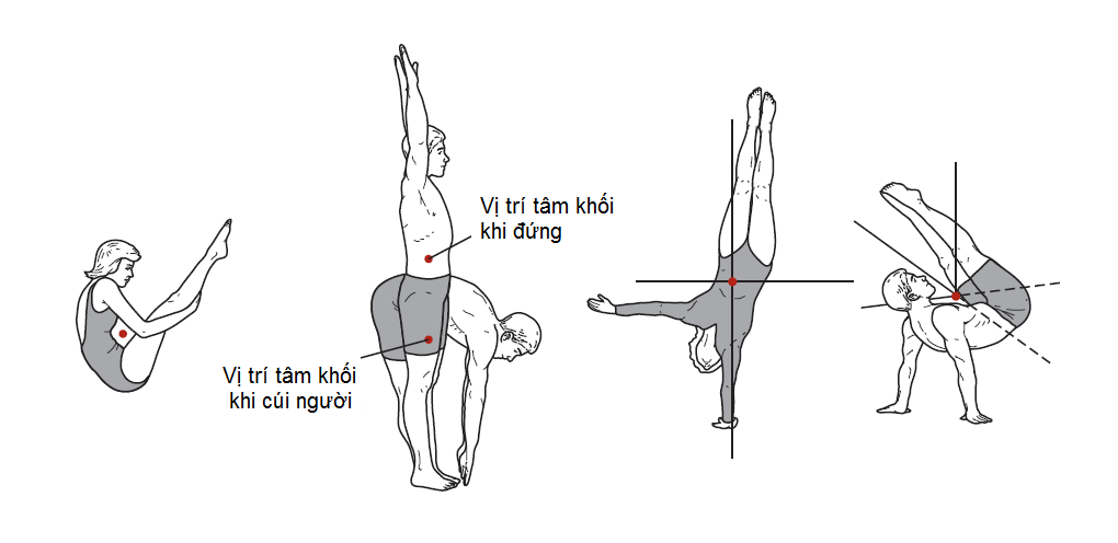 Tâm khối cũng là điểm cân bằng của cơ thể, ở tâm khối tổng các moment xoay bằng không.