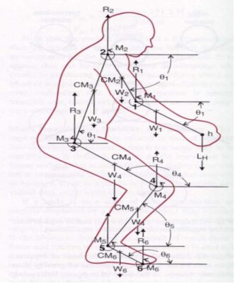 Trọng tâm của cơ thể người có thể được tính bằng nhiều phương pháp khác nhau như ghi hình số hóa (các mốc giải phẫu như vai, khuỷu, háng, gối…) để tạo nên mô hình 2 D hoặc 3 D của cơ thể để từ đó tính trọng tâm của mỗi bộ phận của cơ thể và trọng tâm của toàn cơ thể. Vì sự phức tạp của tính toán nên phương pháp tính không được trình bày ở tài liệu này.