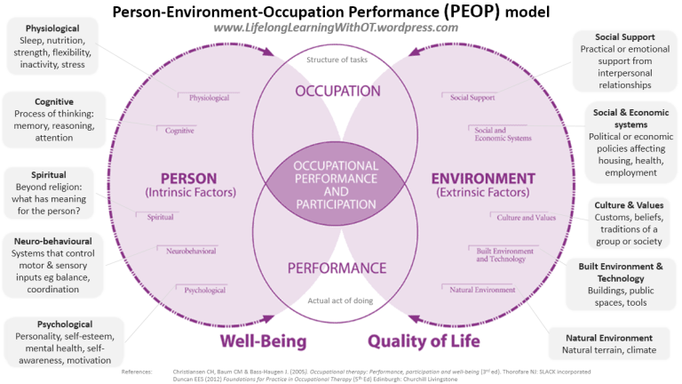 Những đặc điểm trên có liên hệ với nhau và các hành vi của các cá nhân phụ thuộc vào tương tác giữa bản chất của nhiệm vụ, các điều kiện của môi trường và các đặc điểm cá nhân (Mô hình PEO).