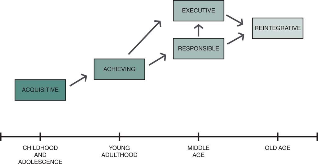 - Giai đoạn thành đạt cá nhân: họ hướng mục tiêu và tập trung sự chú ý của họ vào thực hiện các mục tiêu này. Họ cân nhắc cả bối cảnh và kết quả của những quyết định của họ mà chủ yếu tập trung vào nghề nghiệp và lập gia đình
